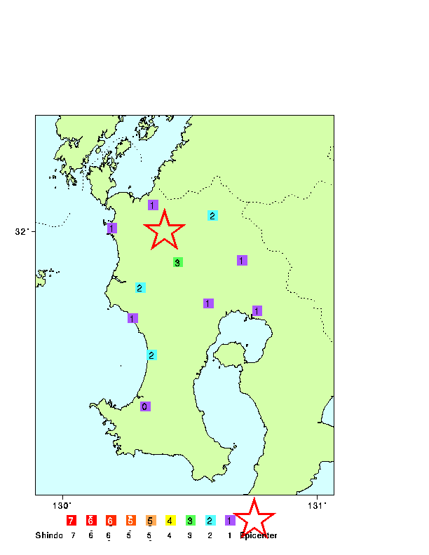 小数点以下まで記してある詳細な計測震度分布図はこちら