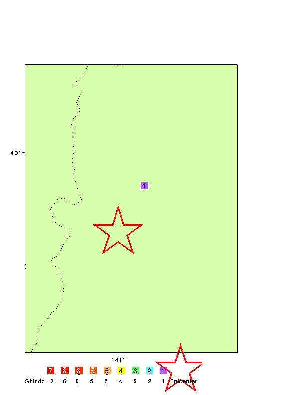 98 年 09 月 03 日 21 時 25 分 緯度 : 39.8 経度 : 141.0 深さ: 0.0 (km) マグニチュード: 4.1