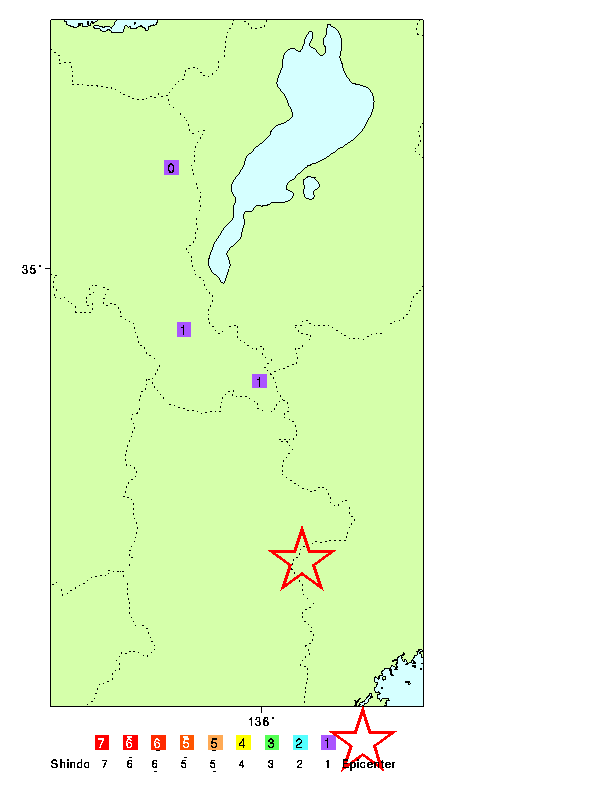 99 年 02 月 18 日 17 時 45 分 緯度 : 34.4 経度 : 136.1 深さ: 10.0 (km) マグニチュード: 3.9